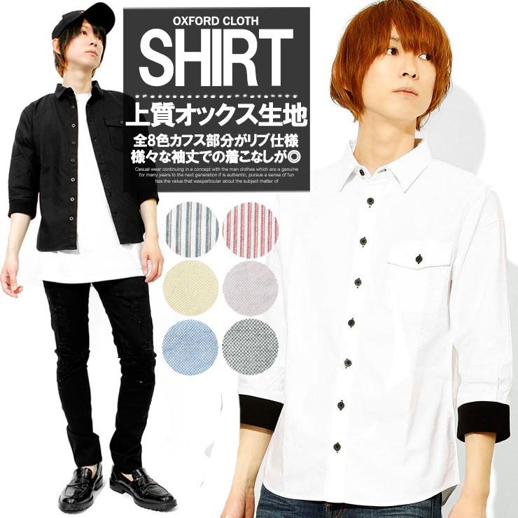 送料無料 七分袖 シャツ メンズ オックスフォード カフス リブ 無地 ストライプ 7分袖 オックスフォードシャツ 夏 白 赤 ビジネス メンズファッション Kogare 通販 Yahoo ショッピング